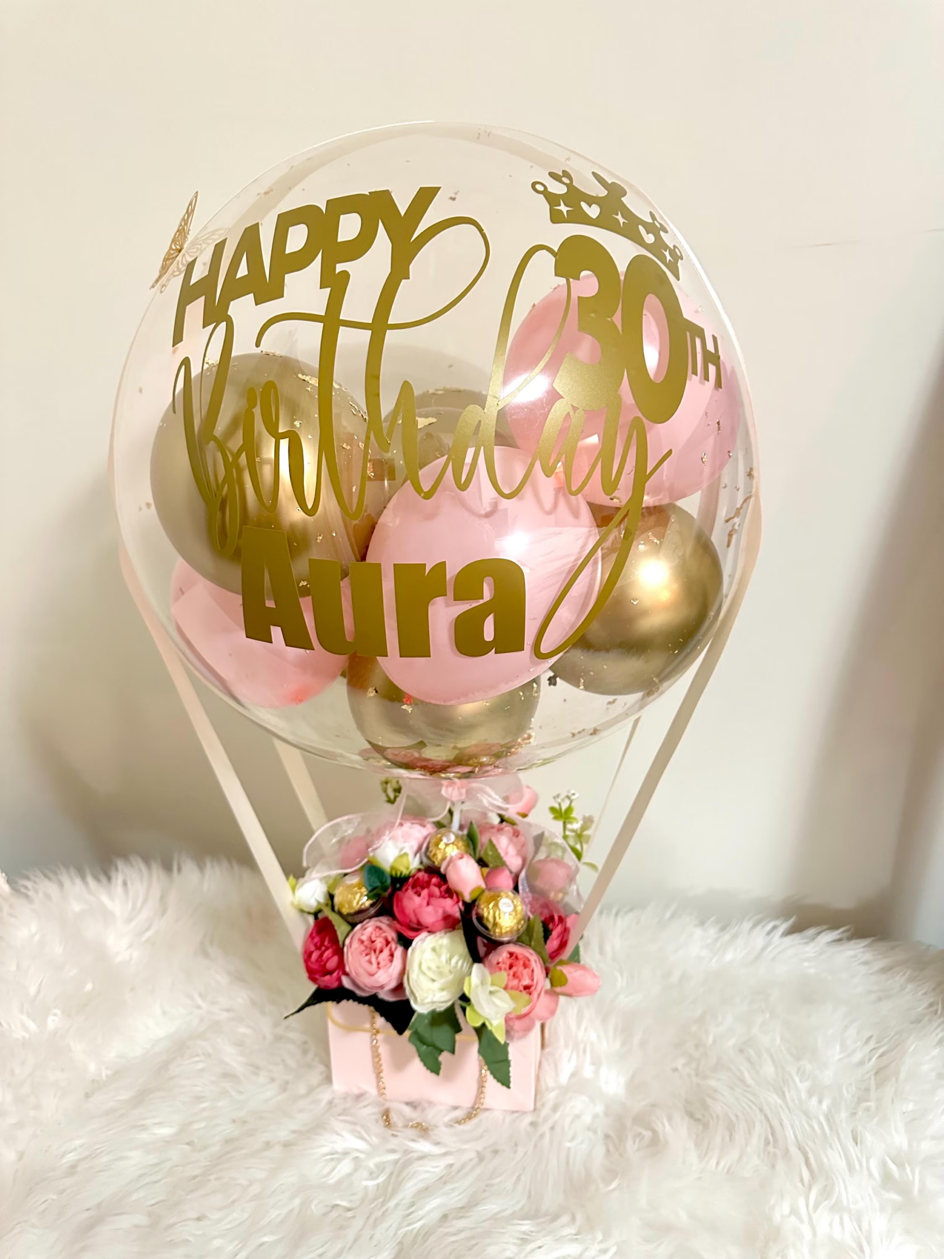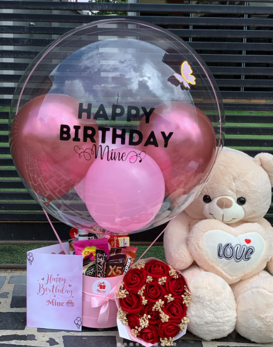 4. PAQUETE 3: PACK PREMIUM BEST GIF: GLOBOS GRANDE TRANSPARENTE (3), CHOCOLATE, FLORES = 45.00 (SI ES CON HELIO 55.00)